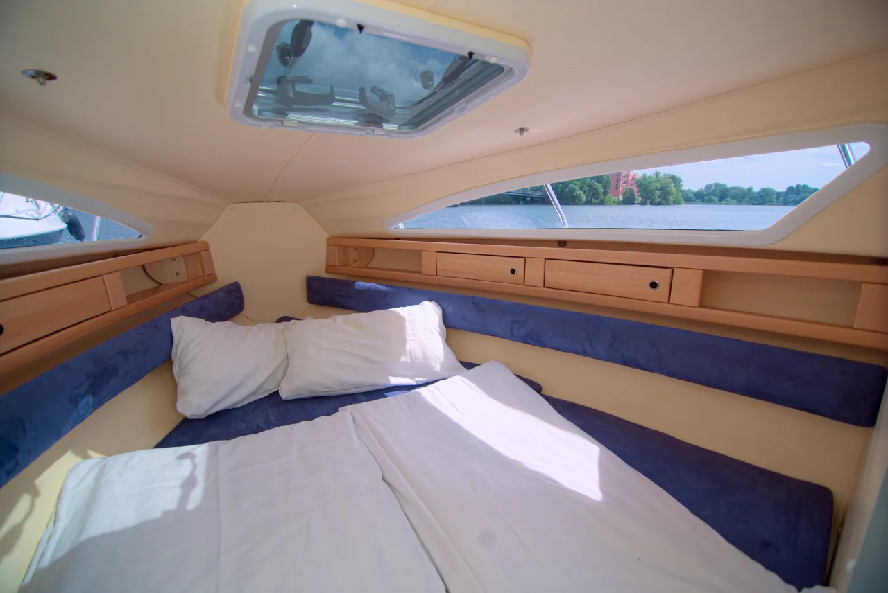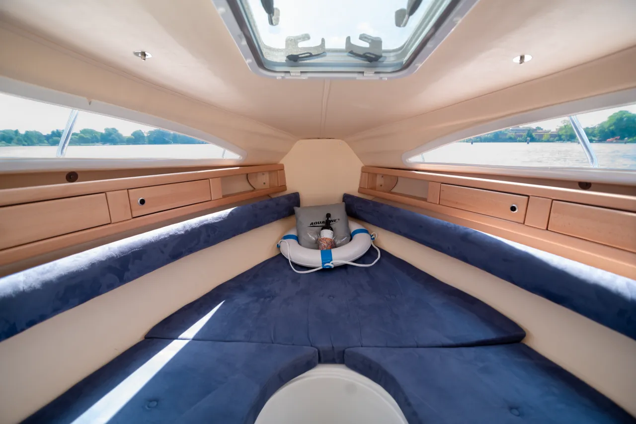 Unsere Sportboote verfügen über perfekte Fahreigenschaften. Durch die kompakte Bootsgröße und einem leistungsfähigen Bugstrahlruders sind die Boote auch für Führerschein-Neulinge geeignet.