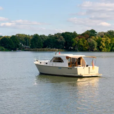 Die Concordia 102 OC "JoAnne" ist komfortabel ausgestattet und ideal für zwei Personen geeignet. Das Boot ist rundum begehbar. Salon, Außenbereich und Badeplattform befinden sich auf einer Ebene. Zum Verweilen lädt die große Sitzgruppe ein. Als Manövrier- und Anlegehilfe stehen Ihnen Bug- und Heckstrahlruder zur Verfügung.