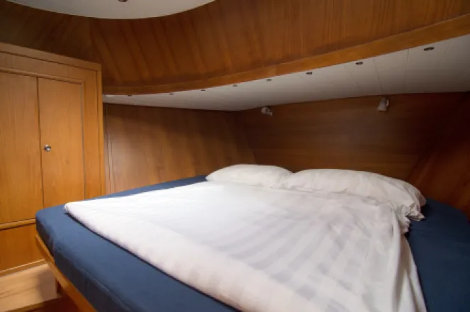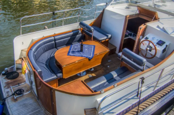 Die „Maria“, ist speziell auf die Bedürfnisse von Paaren zugeschnitten. Das Stahlschiff bietet aufgrund der optimalen Raumausnutzung und seiner Breite besonders viel Platz und Komfort. Unsere Passion 1000 besitzt eine Doppelkabine mit einem französischen Bett, einer Toilette/Dusche und einer Küche im Vorschiff. Der großzügige Außenbereich ist mit einer gemütlichen Sitzecke und einem Tisch ausgestattet. Die Badeplattform lässt sich durch eine Tür erreichen und befindet sich auf einer Ebene mit dem Außenbereich. Durch das breite Gangbord ist ein sicheres Laufen an Deck möglich.