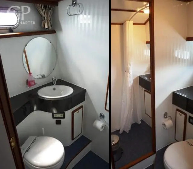 Unsere Motoryachten verfügen über zwei Toiletten/Duschen. Diese bestehen aus einer elektrischen Toilette und einer Dusche. Eine Nasszelle befindet sich im Bug des Schiffes, und die andere im Heck.